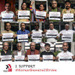 Члены Корейского профсоюза рабочих-металлистов (KMWU) 21 ноября провели встречу по подготовке всеобщей забастовки. Они выразили благодарность за солидарность, проявленную профсоюзами всего мира.