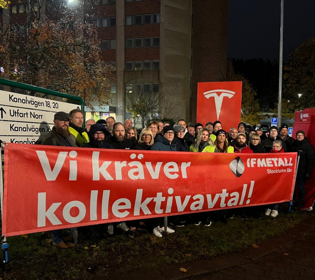 В условиях растущего противодействия антипрофсоюзной позиции Tesla шведские профсоюзы в разных отраслях предприняли солидарные действия по защите права на коллективные переговоры, что привело, в частности, к сбою в поставках номерных знаков для новых автомобилей.
