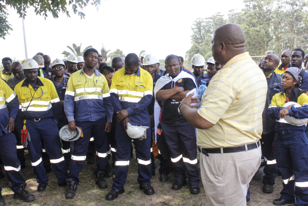 Leadership of IndustriALL affiliate NUM including Acting President Piet Matosa met with the Rio Tinto branch committee at the Rio Tinto Richards Bay operation to explain why the company was being targeted by unions around the world. NUM also distributed the global flyer to its members at the mine.