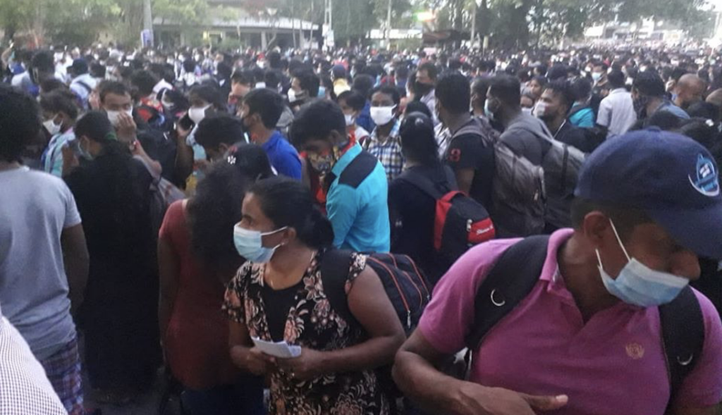 Despite the government’s directions to close factories before 18 March, most factories in the free trade zones remained opened until the curfew. As a result, most workers could not return to their villages and were stranded at their boarding houses near the free trade zones. Workers waiting for their monthly salary did not have money for basic needs.