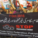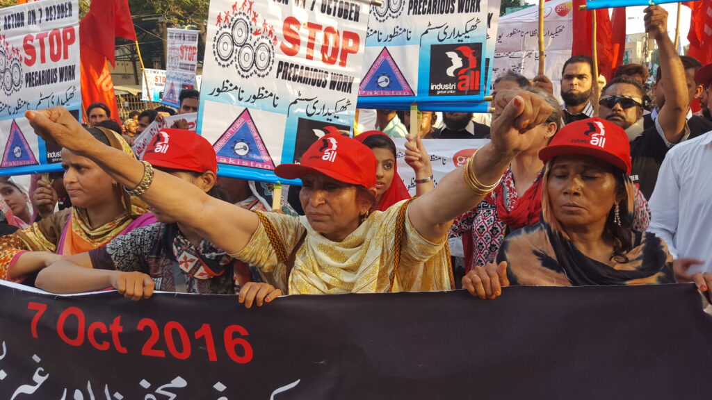 10 October, 2016IndustriALL affiliate Pakistan National Textile Leather Garment & General Federation conducted a rally in Mumtazabad Multan, demanding that the government remove precarious work in all sectors and reform the labour law.The National Trade Union Federation and Home Based Women Workers Federation also protesed against industrial accidents and third party contract systems.The Pakistan Textile Workers Federation organized a rally in Faisalabad calling for an end to precarious work.