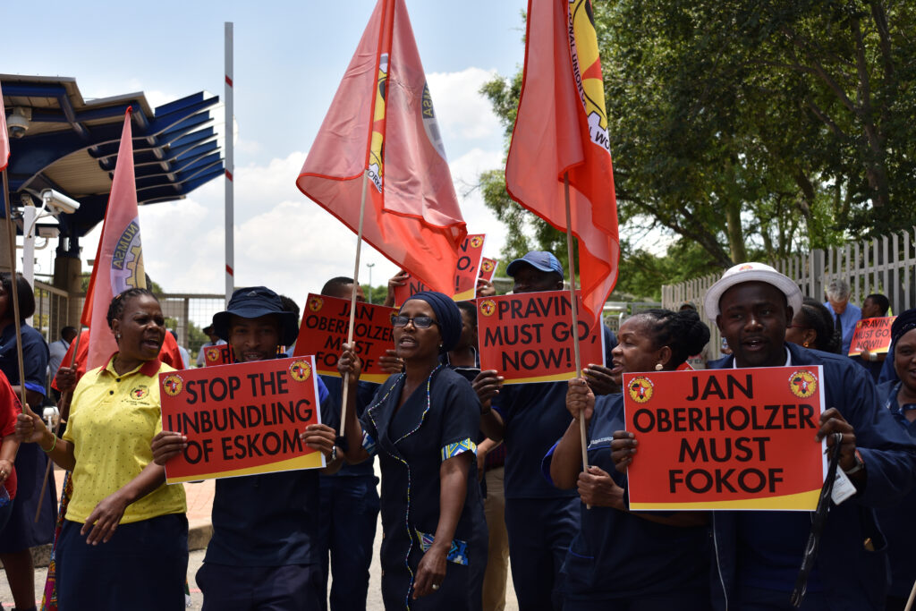 15 January, 2020Close to 100 workers picketed outside the offices of power utility Eskom in Johannesburg today, demanding that the process of splitting the state-owned enterprise be stopped.