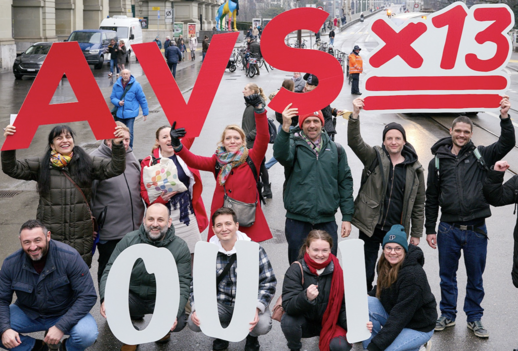 6 March, 2024In Switzerland, for the first time, a popular initiative was accepted that fundamentally enhances the country's 1st pillar old-age pension insurance (AVS) by introducing a 13th pension payment. In an encouraging move, led by the Swiss Trade Union Federation (USS) and supported by women's and retirees' organizations, this initiative addresses the pressing issue of inflation that has hit pensioners hard.