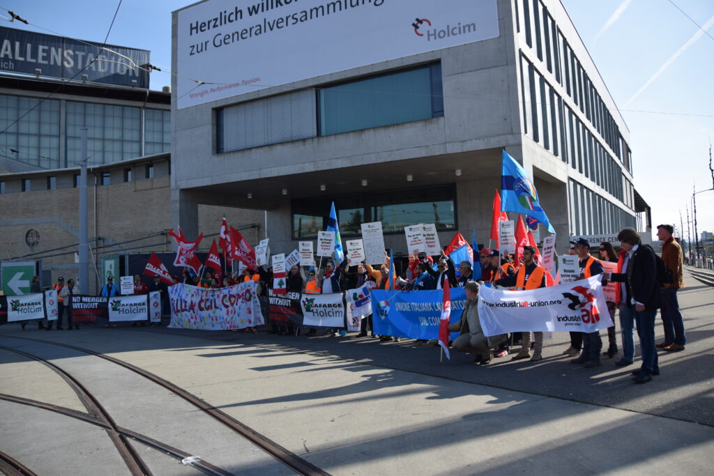 Representatives of IndustriALL Global Union, Building and Wood Workers’ International and European Federation of Building and Woodworkers unions and their affiliates attended the annual Holcim shareholders' meeting. The unions spoke about workers’ concerns and demands, which remain neglected in the mega-merger between two cement world leaders Holcim and Lafarge.