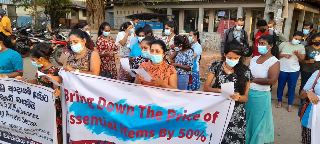 Unions are demanding that all households with an income of less than LKR75,000 (US$258) should be able to buy fuel, kerosene, bread, wheat, rice, etc at January 2020 prices. There should also be a wage increase LKR10,000 (US$34) for workers whose monthly salary is below LKR60,000 (US$206). In addition, the minimum wage should be raised from LKR16,000 (US$55) to LKR26,000 (US$89) per month.