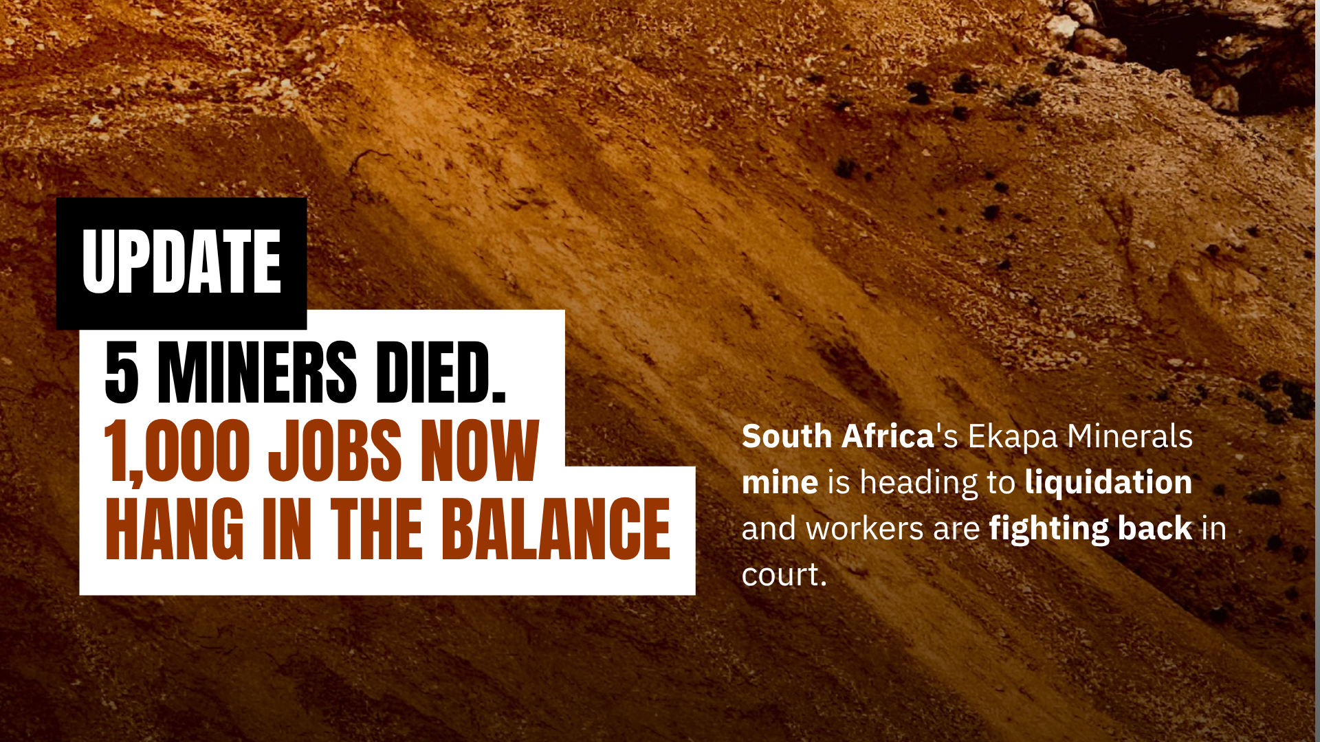 On 17 March, South Africa’s Northern Cape High Court extended Ekapa Minerals’ provisional liquidation rather than granting a final order, postponing the matter to 30 October. The delay follows a challenge by the National Union of Metalworkers of South Africa (NUMSA), which argued that business rescue would preserve more than 1,000 jobs. Liquidation will only cost jobs and harm workers.