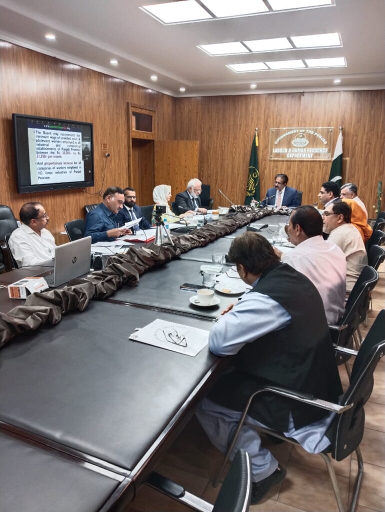 The minimum wage was last revised in 2022. Unions argued in the meeting that given the skyrocketing prices of essential items, wages must be immediately raised to reflect the inflation rate. Pakistan’s inflation rose to 31.5 per cent in February this year and food inflation hovered around 45 per cent, making workers’ lives extremely precarious.