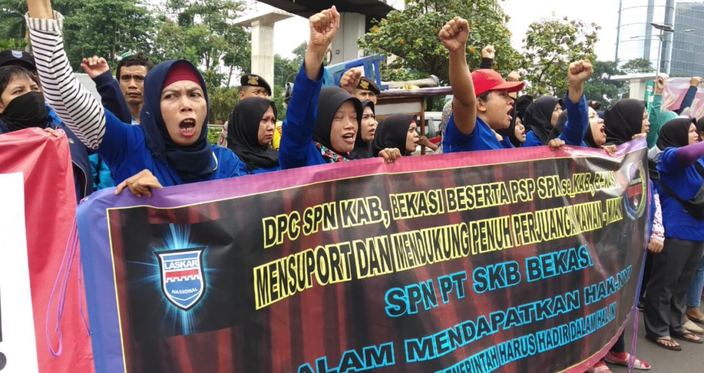 PT Selaras Kausa Busana (SKB) garment factory, located in Bekasi, West Java Province employed 4,000 workers, who are nearly all women, before it was abruptly abandoned by its South Korean owner in October last year.