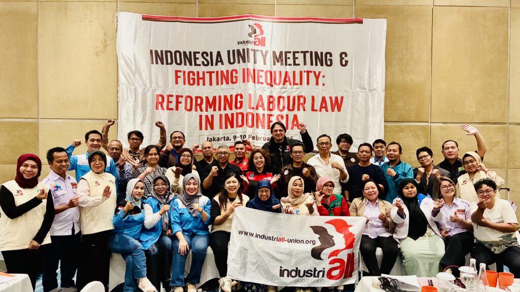 The Indonesian National Unity and Labour Law Reform was held on 9-10 February in Jakarta. The leadership came from 10 IndustriALL affiliates in Indonesia. The aim of the meeting is to strengthen unity among affiliates and coordination in preparing the Indonesian labour law reform. Iwan Kusmawan, chair of the Indonesia Council, stated that IndustriALL affiliates are now prepared for the new labour law discussion, as urged by the 2024 Constitutional Court’s ruling on the Job Creation of Omnibus Law.