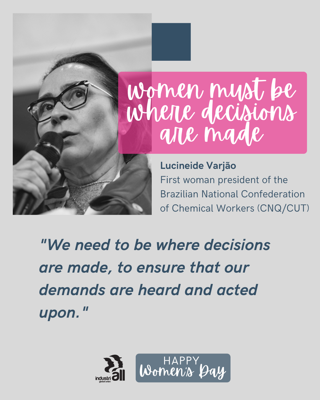 Women in every factory, every union, every country have the rights, dignity and power they deserve.
